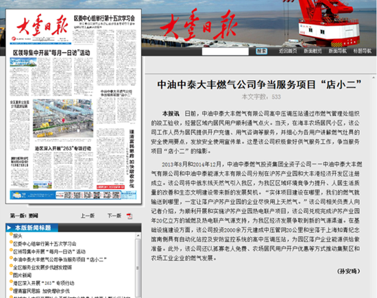 中油中泰大豐燃?xì)夤緺?zhēng)當(dāng)服務(wù)“店小二”
