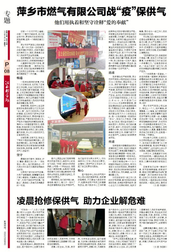 《江南都市報(bào)》:萍鄉(xiāng)市燃?xì)庥邢薰緫?zhàn)“疫”保供氣