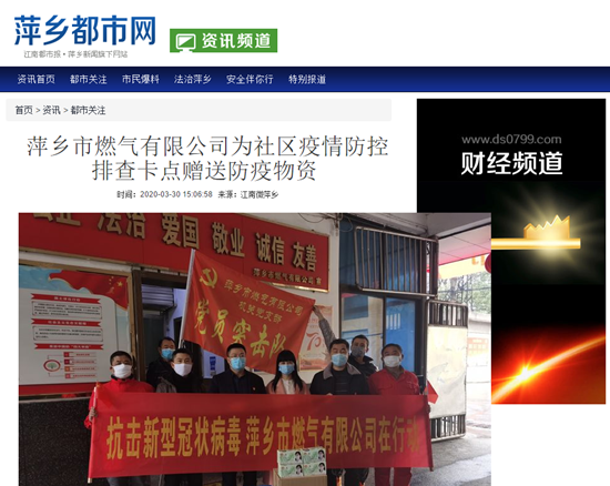 《萍鄉(xiāng)都市報》:萍鄉(xiāng)燃?xì)鉃樯鐓^(qū)疫情防控捐贈防疫物資