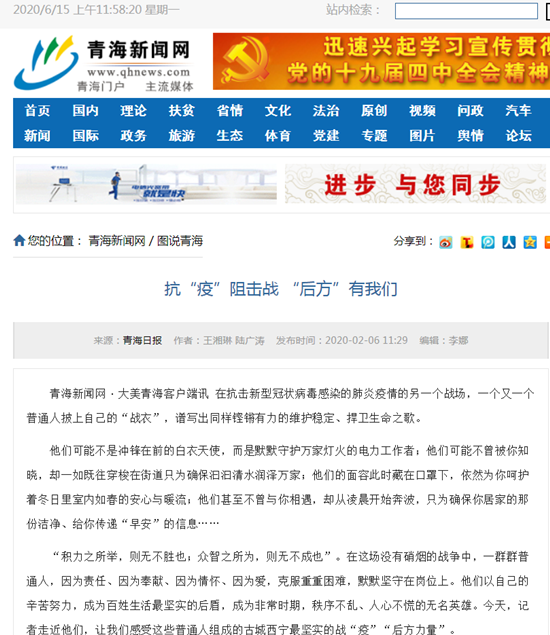 《青海日?qǐng)?bào)》:抗“疫”阻擊戰(zhàn) “后方”有我們