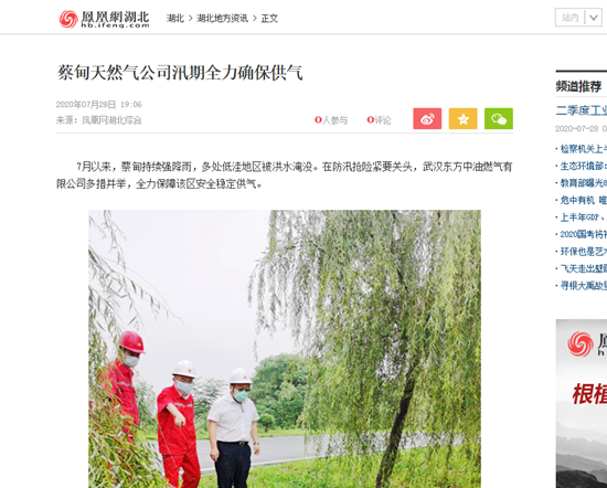《鳳凰網(wǎng)》:蔡甸天然氣公司汛期全力確保供氣