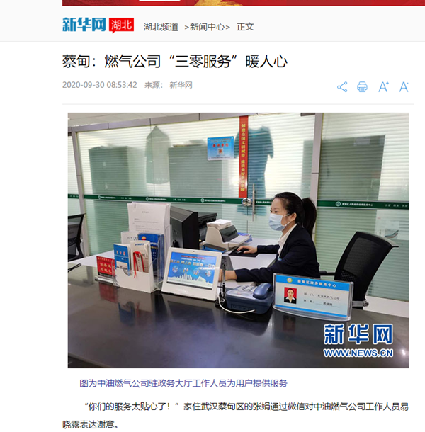 《新華網(wǎng)》:蔡甸燃氣公司“三零服務”暖人心